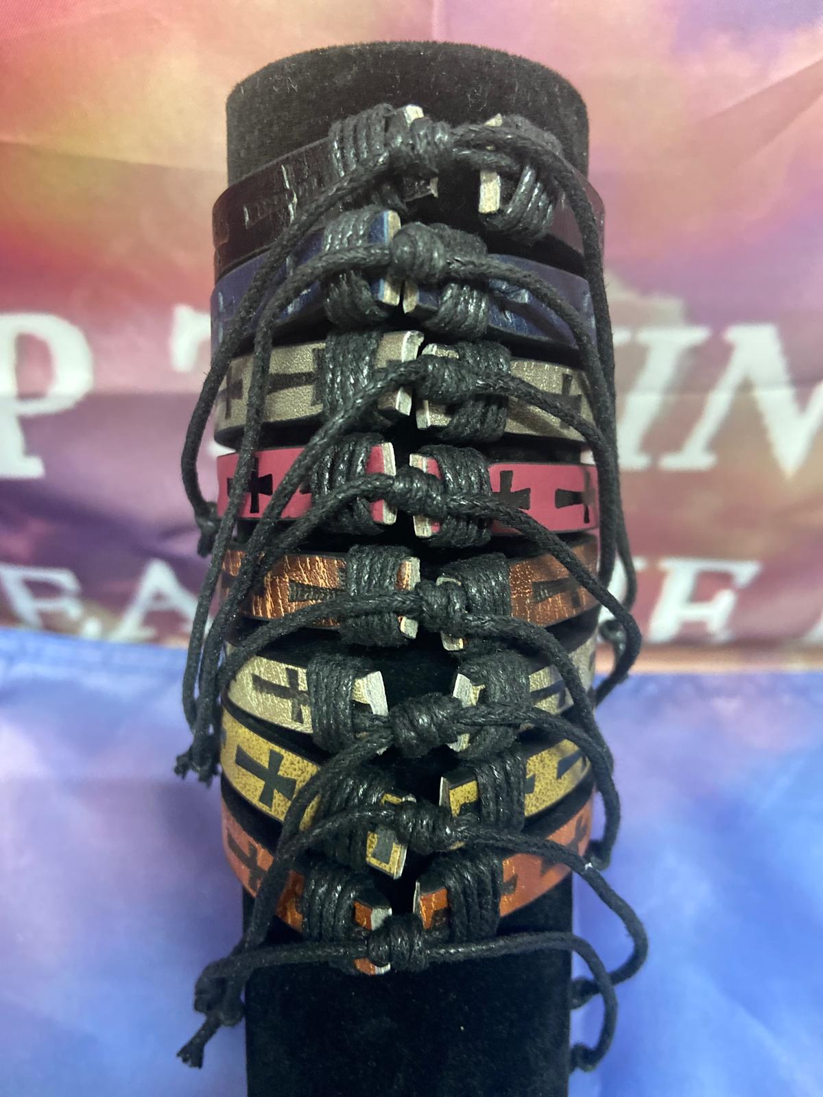 Covenant Cuffs – 8-delige Leren Herenarmbanden Set met Kruisdetail