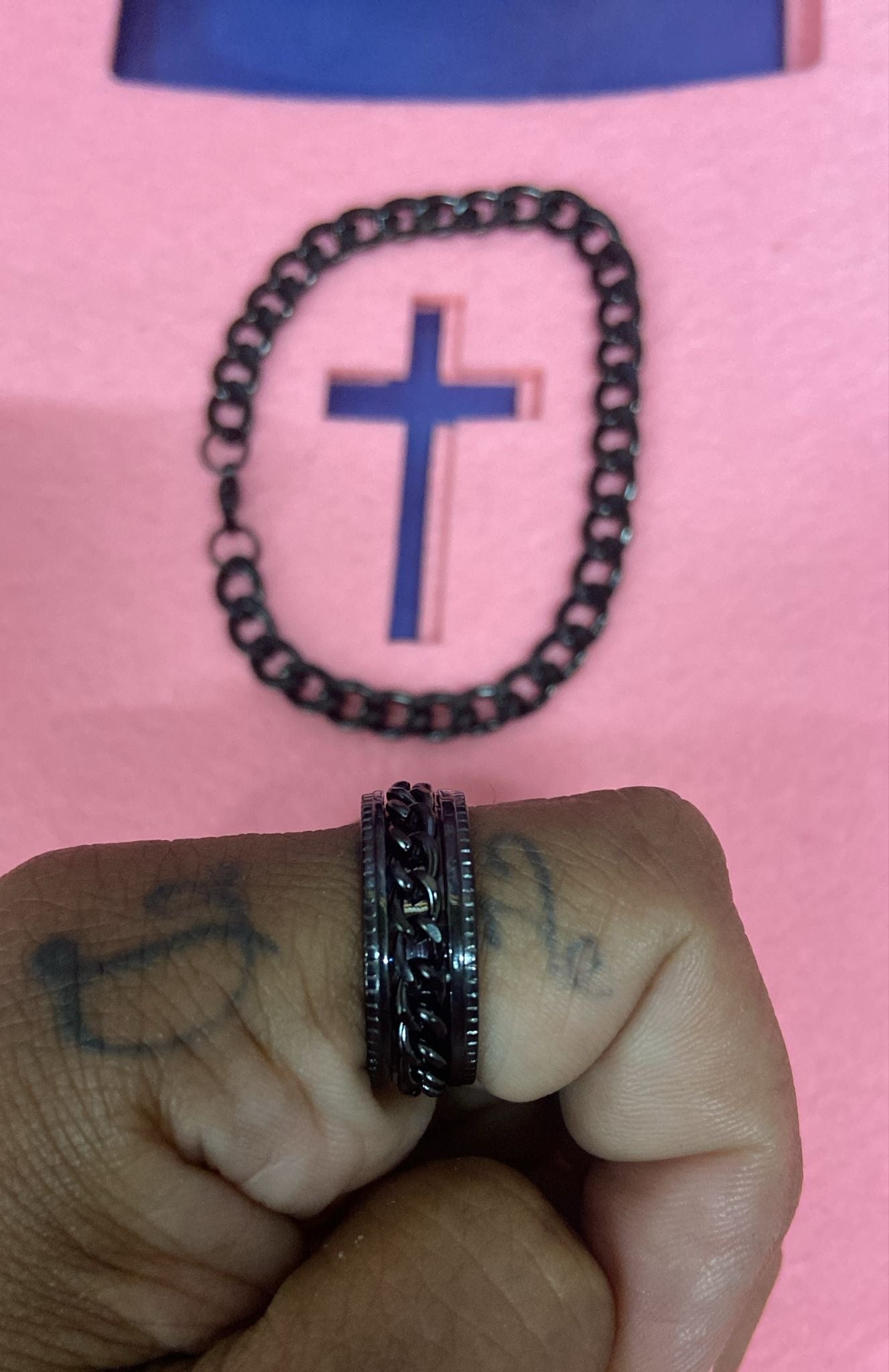 Voor de man die zijn geloof met overtuiging draagt. De Faith Armor Set bestaat uit een robuuste, metalen armband met kruisdetail en een bijpassende ring met diepe gravures. Deze set straalt kracht, identiteit en geloof uit – en vormt een visuele reminder van je missie, elke dag opnieuw.