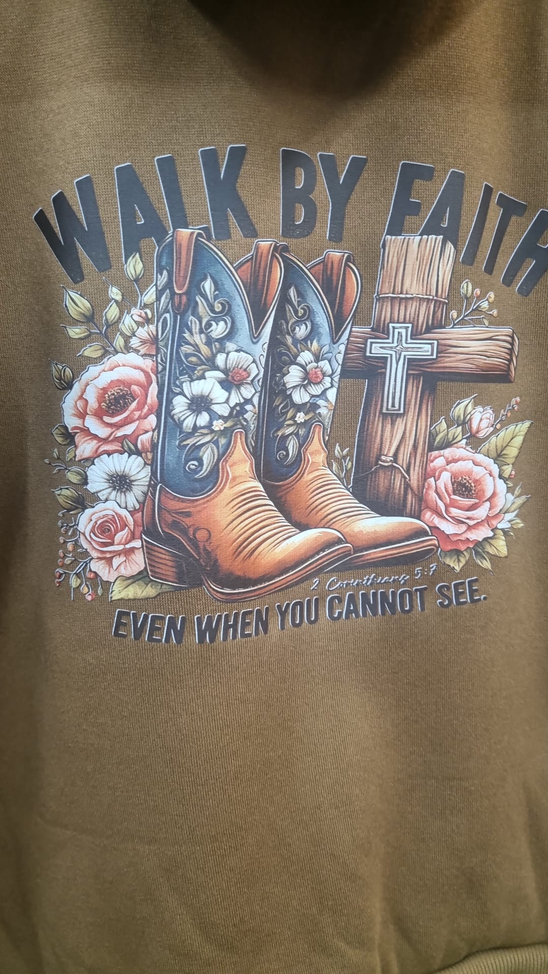 “I Walk By Faith” Hoodie – Bruin | Unisex Faithwear Collectie