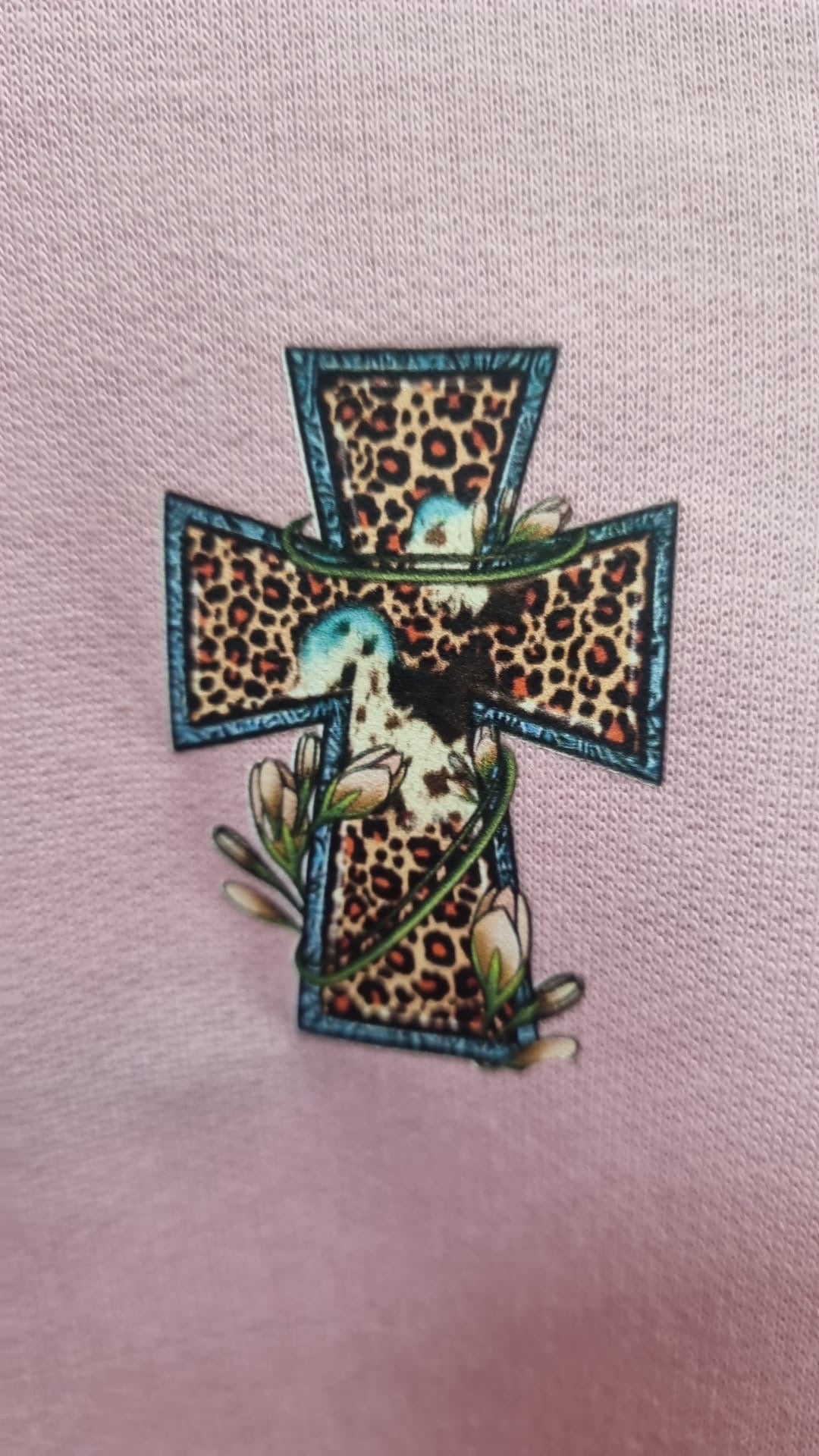 Op de borst staat een uniek OnlyHeKnows2025 kruis met artistieke leeuw- en bloemenprint β een krachtig symbool van geloof en identiteit.